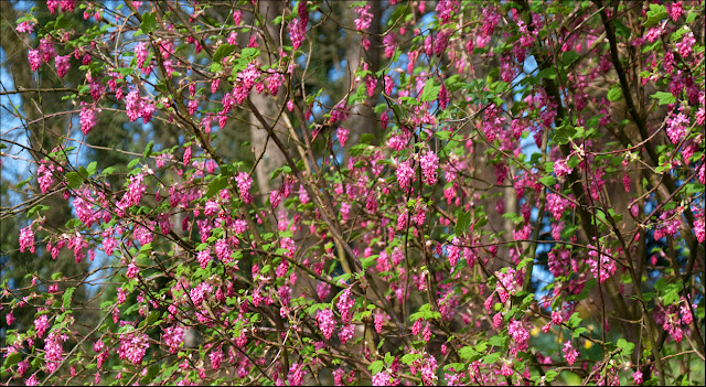 The first camellia is covered in flowers and the viburnum bonariensis has been splendid for a few months. The flowering currants have benefitted from a prune in the winter.